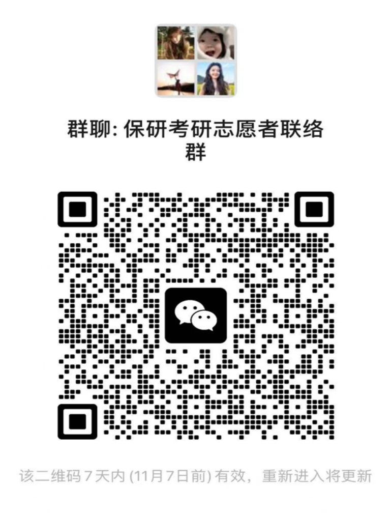 根据校团委保研考研经验分享交流会活动部署,结合工作实际,依照报名同学学习成绩和主要荣誉等综合考虑,确定以下志愿者名单,现将结果予以公布。请各位已被录取为志愿者的同学及时扫描群聊二维码加入工作联络群,时间截止11月1日12:00。