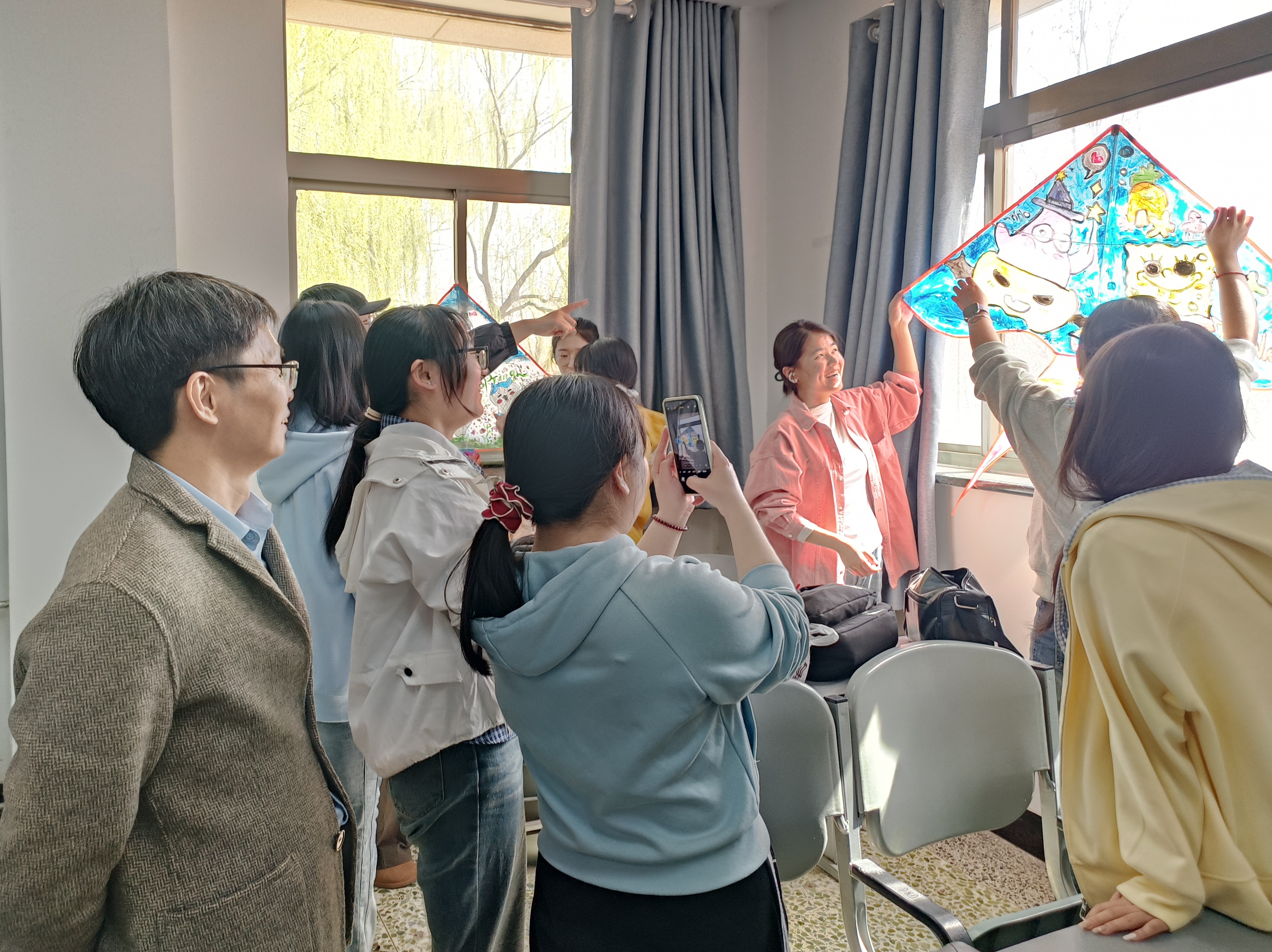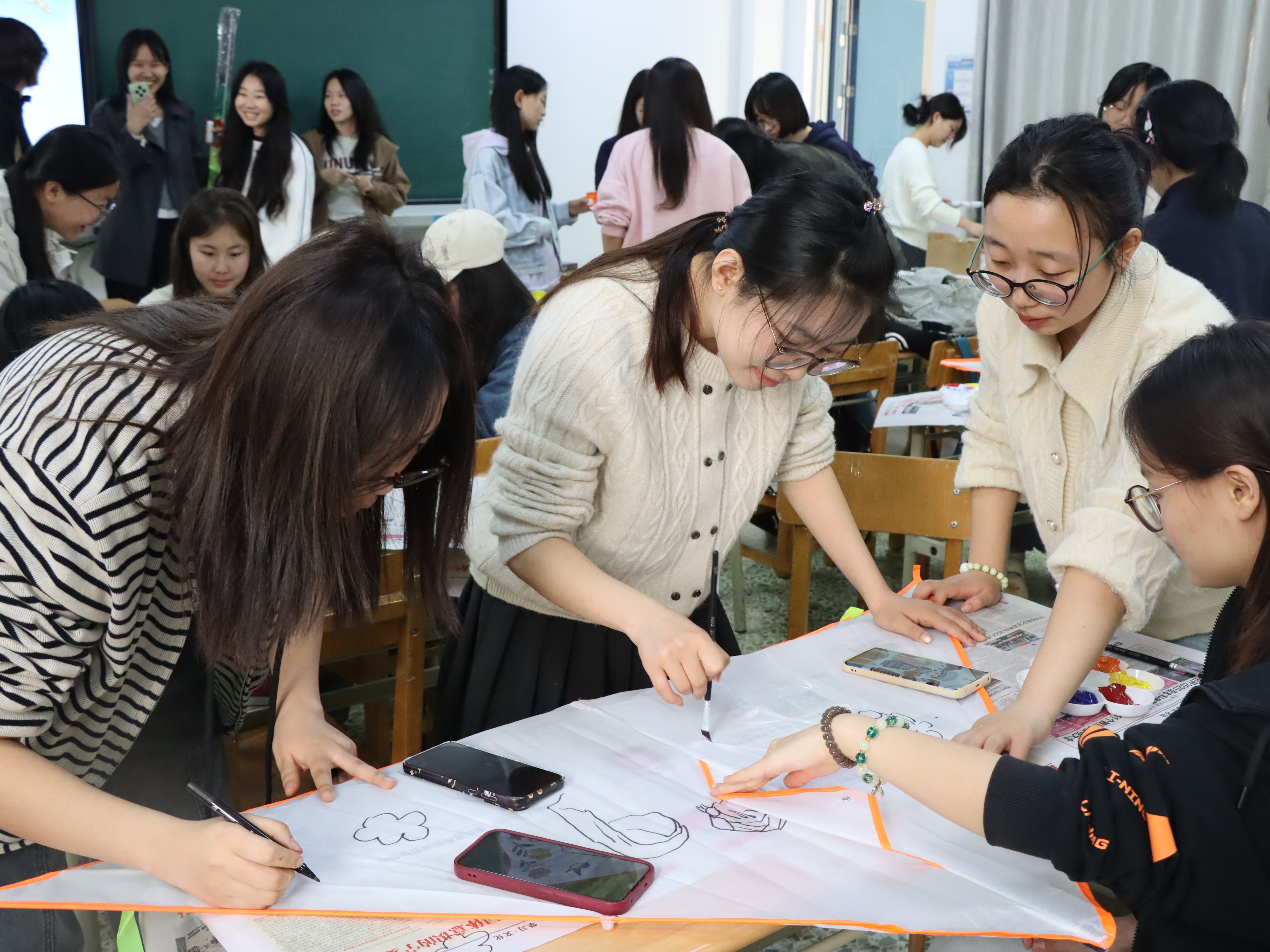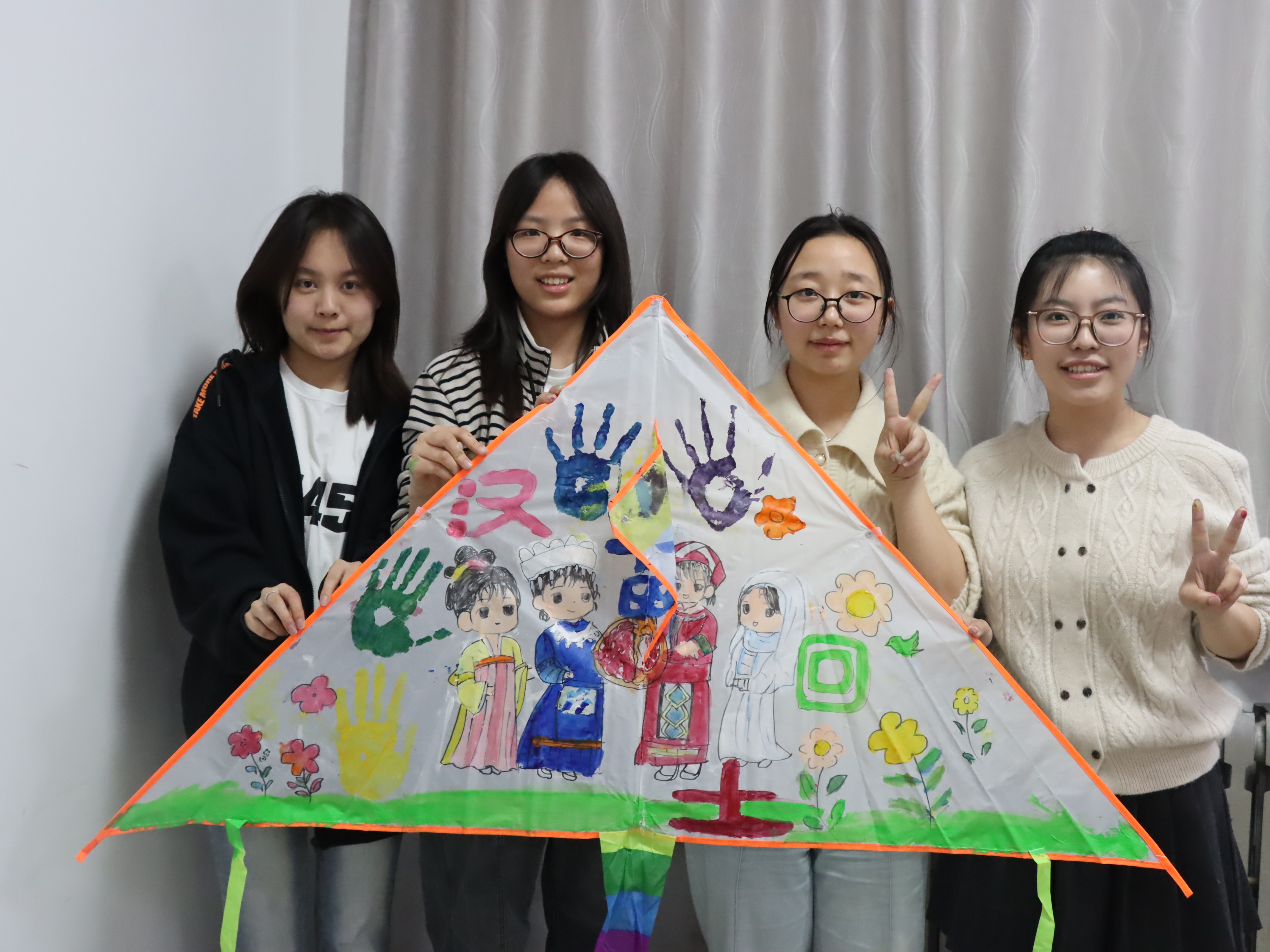 创作过程中,学子们互帮互助、交流灵感,将对春日的期许、对宿舍生活的热爱、对民族团结的感悟融入笔尖。一幅幅色彩斑斓、寓意美好的风筝作品相继诞生,尽显青春朝气与团结情谊。
