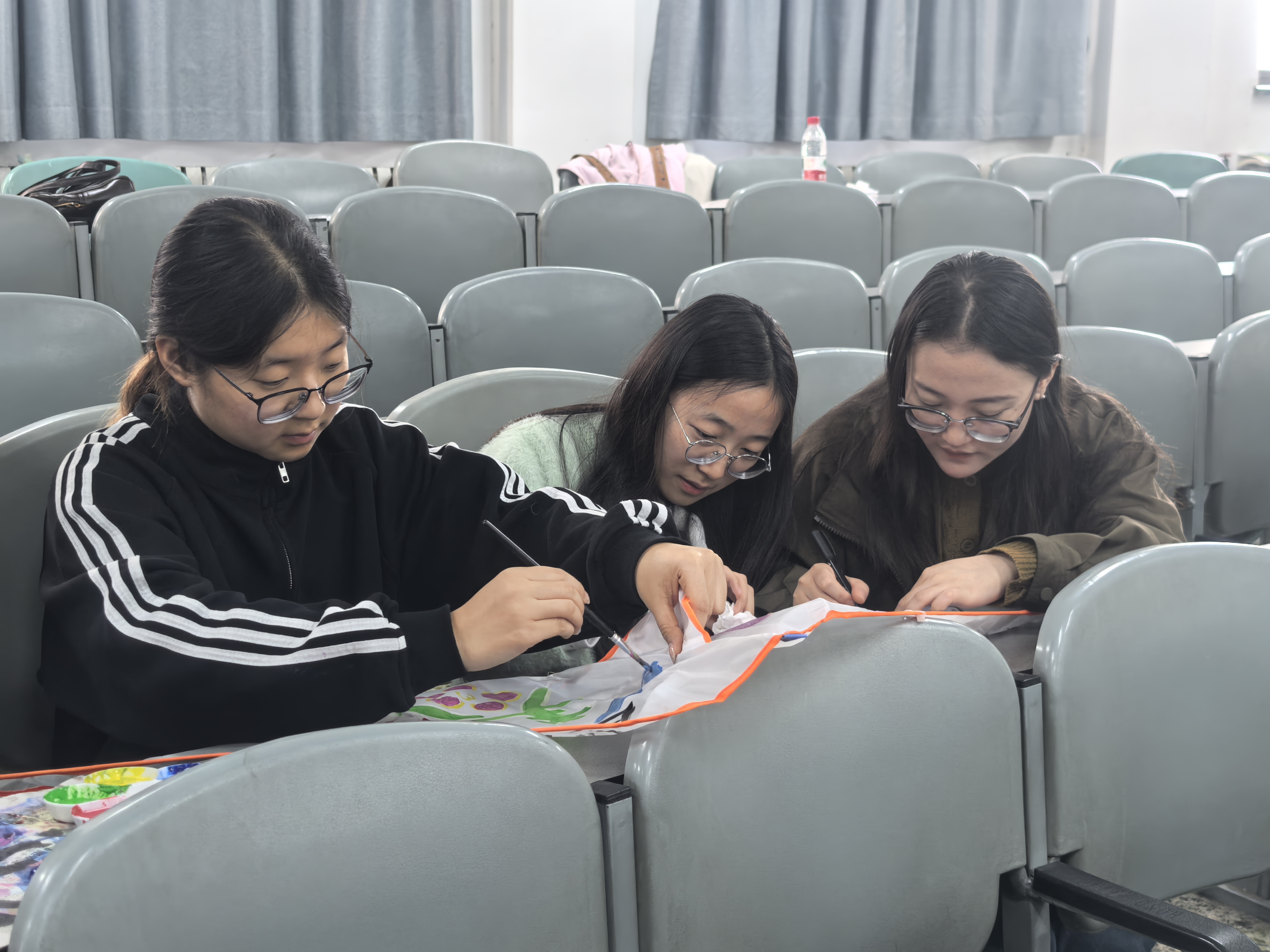 本次活动以宿舍为单位组队参与,全程分为DIY创意彩绘与户外放飞两大环节,流程紧凑且趣味十足。在DIY创意彩绘环节,工作人员提前精心准备了风筝、颜料、画笔等各类创作工具,为同学们搭建起自由发挥的创作平台。学子们围坐成团,携手并肩展开创作,大家尽情挥洒创意、描绘心中所想。