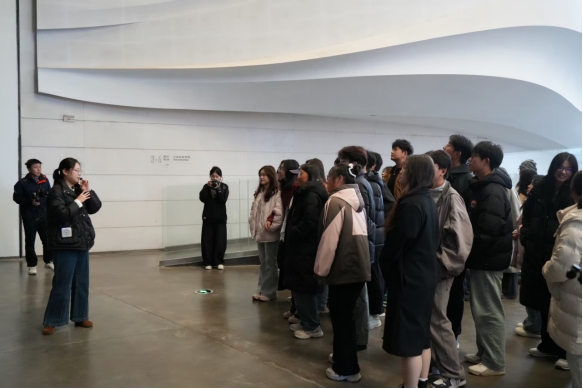 在馆内讲解员的引导下,学员们依次走进“束装重启——直挂云帆济沧海”“此刻在此,东方低语”“百川异源,皆归于海——日新其途”“杯灯正暖,必有回响”四大主题展区。各展区所呈现的人文温度与对传统文脉的当代传承,引发了学员的深入思考与交流,让学员们不时驻足凝视、交流探讨。